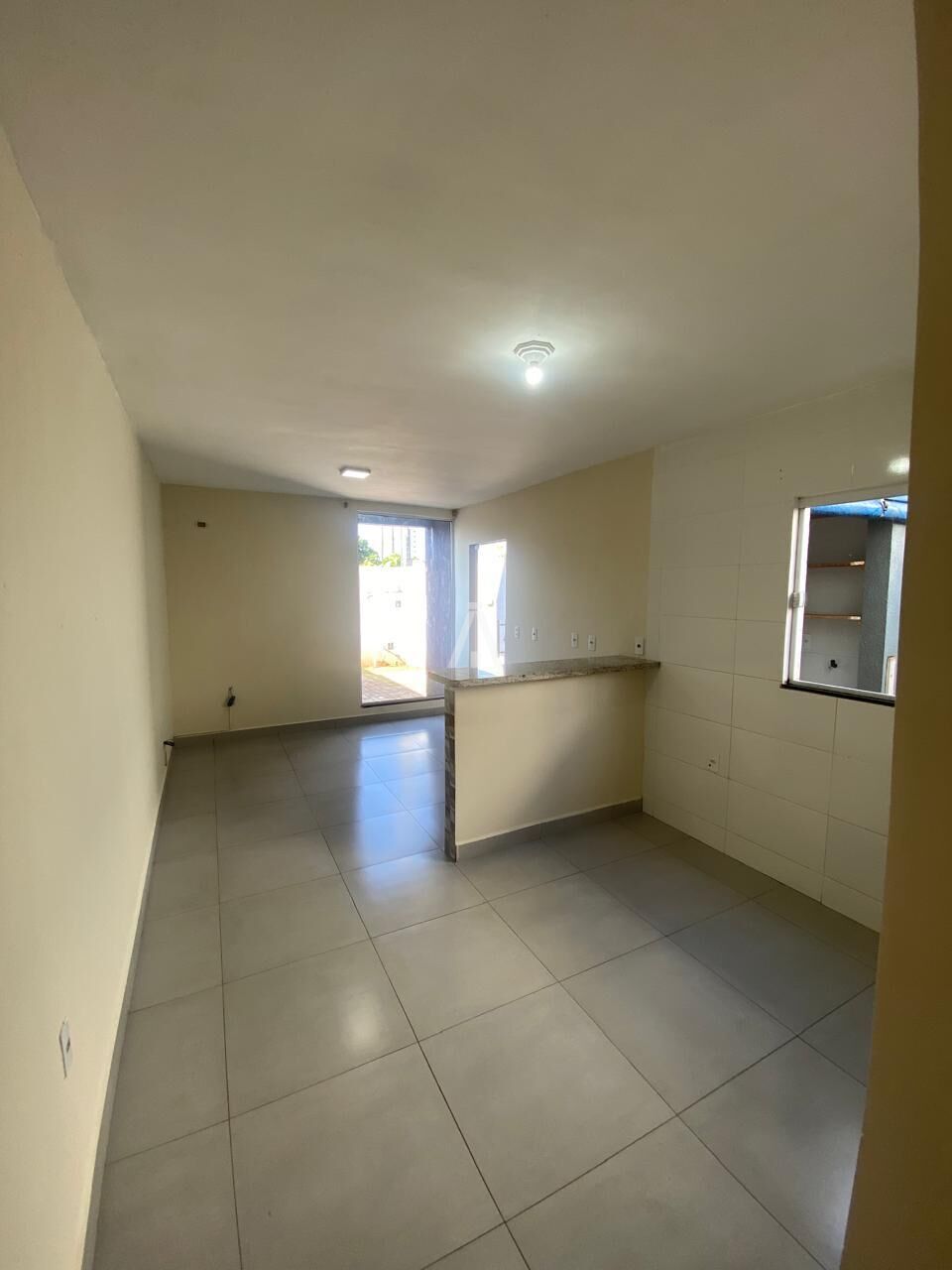 Dispõe de sala de estar e cozinha conjugada, 02 dormitórios, 01 banheiro social, área de serviço e espaço de quintal.